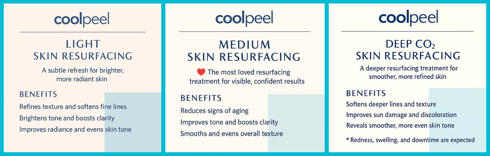If you’re noticing dullness, texture, visible pores, fine lines, acne scars, sun damage—or you’re planning for an event and want glow with controlled downtime—CoolPeel is a fit. Deeper concerns may need Medium/Deep settings or a series.
